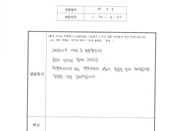 18. 08. 31. 30대 남성의뢰인의 상담후기