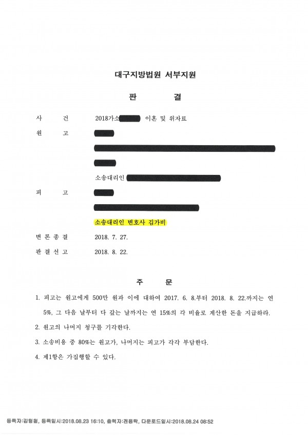 결과 : 재판부에서는 법률사무소 그날의 의뢰인 A와 여성 B의 교제 기간이 극도로 짧은 점,
