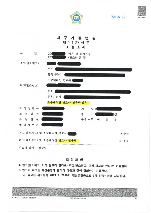 결과 : 이에 조정기일 지정되어 법률사무실 그날에서 제출한 재산목록표를 근거로