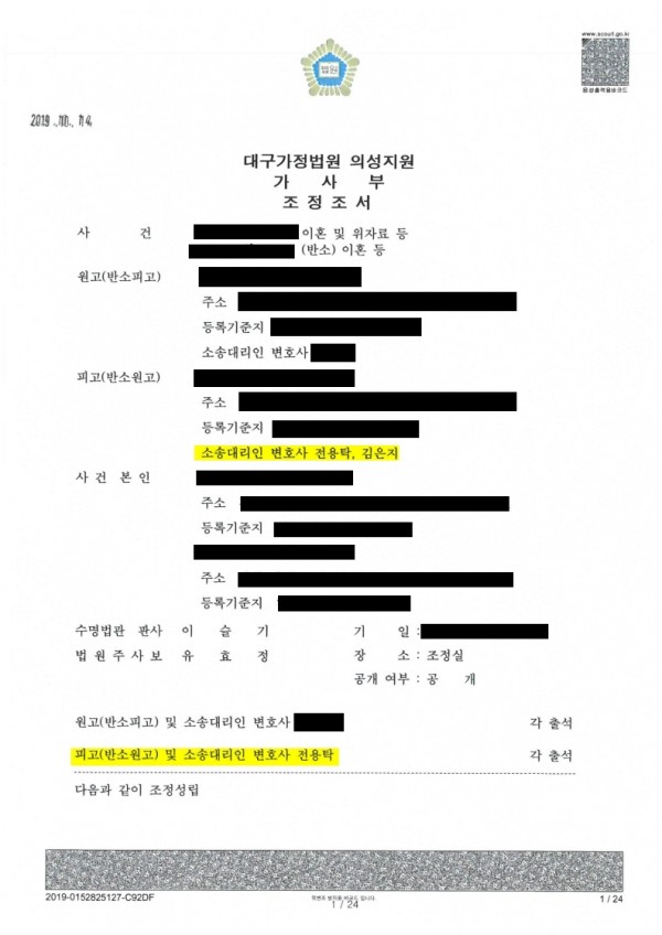 개요 : 의뢰인 A 배우자 B는 갑자기 집을 나간 뒤 이혼, 위자료(A가 B를 폭행했다고 주장), 재산분할(A가 수억 원의 가축을 보유하고 있다고 주장), 친권자 및 양육권자를 B로 지정하고, 양육비를 청구하는 이혼 소송을 A를 상대방으로 하여 제기하였고, 소장을 받은 A는 이에 대한 대응을 의뢰함.