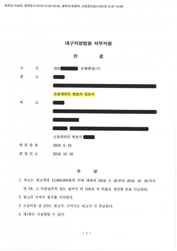 결과 : 이에 재판부는 법률사무소 그날에서 제출한 각종 자료들을