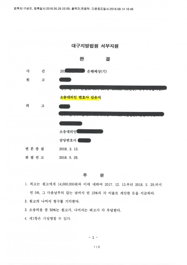 과정 : 원고가 제공한 증거를 최대한 활용하여 위자료 청구를 하였고, 피고 또한 자신의 부정행위를 모두 인정함.