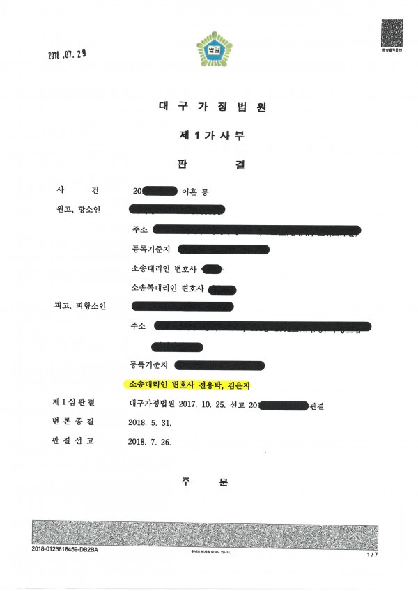 개요 : 피고(의뢰인)는 원고와 혼인신고를 필한 법률상 부부 사이로