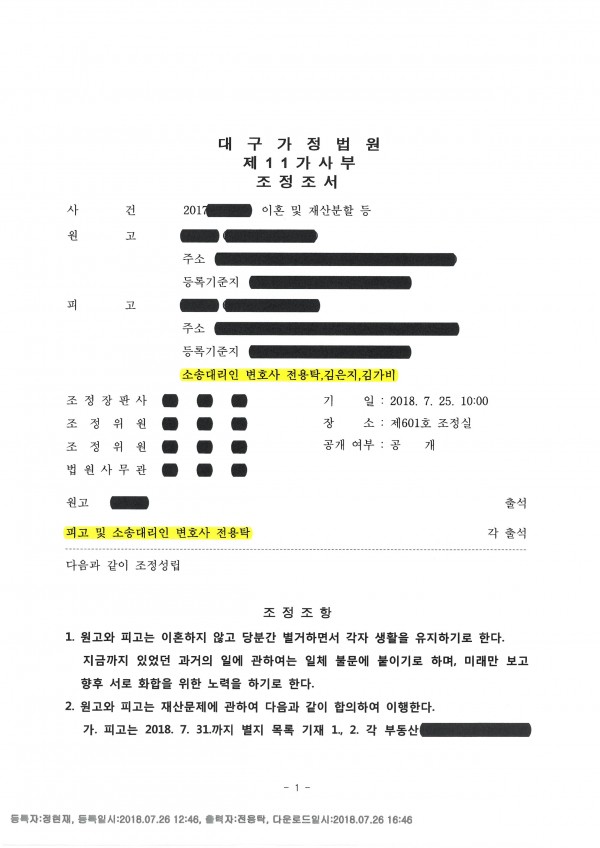 아내 B의 불안감을 해소시켜 아내 B 또한 의뢰인 A와 이혼하지 않고 앞으로 함께 남은 여생을 잘 보내는 것으로 조정 성립함.