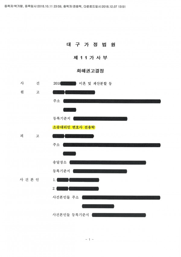 결과 : 의뢰인과 배우자 사이 원만한 협의과정을 도출해 당사자 사이
