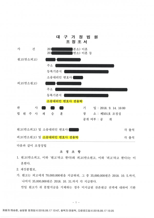 의뢰인 A에게 재산분할을 하는 내용으로 법률사무소 그날의 주장을 일부 받아들여 조정성립 함.