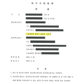 부정행위를 한 배우자에게 이혼, 위자료, 재산분할, 친권, 양육권, 양육비 청구를 하여 전부 인용된 사례